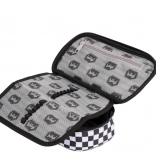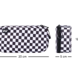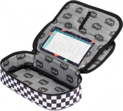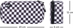 Stylowy szkolny piórnik BAAGL w czarno-białą szachownicę oferuje sztywną konstrukcję, odchylaną przegrodę dla przejrzystego przechowywania, wewnętrzną kieszeń na zamek oraz praktyczny plan lekcji. Idealny dla uczniów, studentów i do biura. Dostarczany bez wyposażenia.