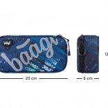 Stylowy piórnik szkolny BAAGL w designie Skate Struktury oferuje solidne wykonanie, podwójną klapkę rozkładaną oraz praktyczną wewnętrzną kieszeń na zamek. W środku nie brakuje kieszeni z planem lekcji, a z przodu znajduje się odblaskowe logo dla lepszej widoczności. Idealny do przejrzystego przechowywania przyborów do pisania w szkole i w podróży.