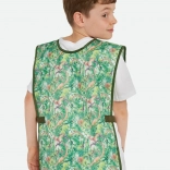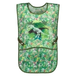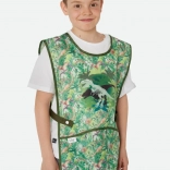 Ten fartuch przyciąga uwagę kolorową grafiką z motywem zabawnych dinozaurów i dżungli.