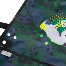 Stylowy dziecięcy fartuszek z motywem piłki nożnej od marki BAAGL, idealny na zajęcia plastyczne i inne aktywności manualne. Praktyczne kieszenie i trwały, łatwy do czyszczenia materiał.