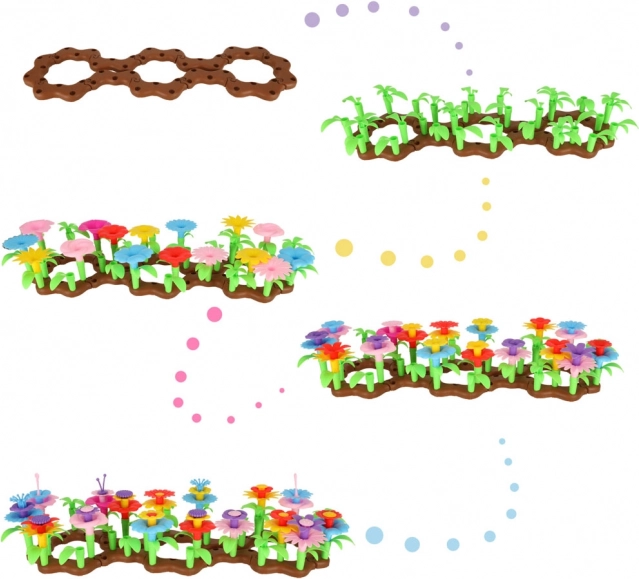 Ten kolorowy zestaw do budowania zawiera 104 elementy, które umożliwiają swobodną kreatywność w tworzeniu pięknych kombinacji kwiatowych. Dzieci będą miały możliwość bawić się i jednocześnie rozwijać kreatywność, drobne umiejętności motoryczne i koordynację oko-ręka.