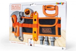 Pas na narzędzia z regulowanym paskiem na licencji Black & Decker. Zawiera 14 sztuk akcesoriów: piłę, śrubokręt, młotek, klucz uniwersalny, miarkę, 3 śruby, 3 płaskie łączniki i 3 nakrętki. Z kieszenią na odkładanie. Wymiary: 44 × 10 × 6 cm.