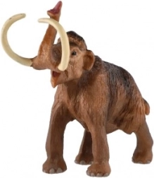 Ta plastikowa figurka wiernie odwzorowuje detale mamuta włochatego, w tym wyraźne ciosy i strukturę sierści.