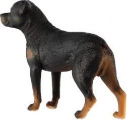 Figurka dokładnie naśladuje cechy i kolory rottweilera, co czyni ją świetną ozdobą lub zabawką do celów edukacyjnych.