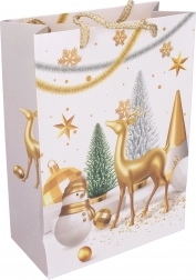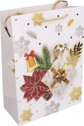 Stylowa torebka prezentowa w rozmiarze S o wymiarach 18 × 24 × 8,5 cm jest idealna do pakowania mniejszych upominków. Oferuje świąteczne motywy, solidne wykonanie oraz wygodne przenoszenie dzięki praktycznym uchwytom.