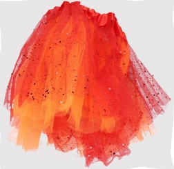 Lekka i zabawna karnawałowa spódnica z dwuwarstwowym wykonaniem w miksie 3 kolorów. Idealny dodatek do kostiumów i na przyjęcia, z praktyczną długością 29 cm.