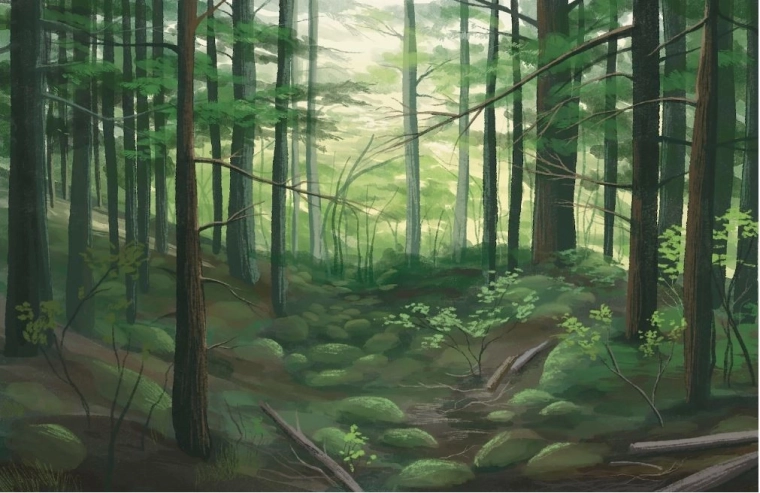 Bliski las tętni życiem! Zwierzęta spieszą na polanę, szukając jadalnych roślin i owadów. Niektóre wolą przebywać w bujnych koronach drzew, podczas gdy inne zamieszkują podszyt, gdzie czują się bezpiecznie.