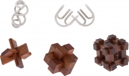 - 5 unikalnych łamigłówek – 3 drewniane i 2 metalowe