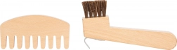 Szczotki, grzebień i skrobak do kopyt z wytrzymałego drewna są zaprojektowane z myślą o małych dziecięcych dłoniach i realistycznej zabawie.