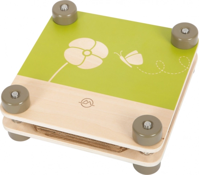 Ta wysokiej jakości drewniana prasa do kwiatów z linii Discover to idealne narzędzie dla małych odkrywców i miłośników rękodzieła. Dwie solidne drewniane płyty łatwo dokręca się czterema metalowymi śrubami z nakrętkami, dzięki czemu dzieci uzyskują równomierny nacisk i perfekcyjne wysuszenie kwiatów, płatków i traw.