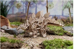 Z drewnianą mechaniczną układanką stegozaur od UGEARS możesz zbudować własny chodzący model klasycznego dinozaura. Ten model nie wymaga kleju ani specjalnych narzędzi – wystarczy złożyć drewniane elementy według szczegółowych instrukcji w jedenastu różnych językach.