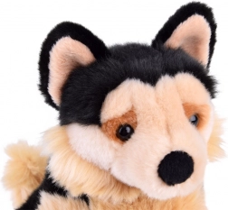 Ten siedzący pluszowy owczarek niemiecki z serii eco friendly został zaprojektowany z dbałością o detale. Realistyczne proporcje, wyraziste oczy oraz połączenie beżowej i czarnej sierści czynią z niego wspaniałego towarzysza dla małych miłośników zwierząt. Miękka powierzchnia jest przyjemna w dotyku i zachęca do przytulania.