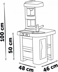 Przy wysokości blatu 50,5 cm kuchnia jest wystarczająco duża, by zapewnić dużo miejsca do zabawy. Wyprodukowano we Francji, Smoby wspiera rozwój dziecięcej wyobraźni i samodzielności.