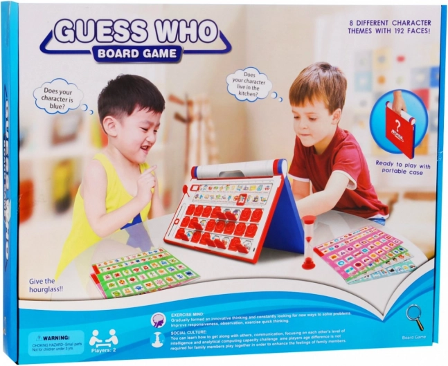 Gra oferuje dwa tryby: klasyczne zgadywanie, gdzie wygrywa ten, kto pierwszy odgadnie postać przeciwnika, oraz tryb czasowy z klepsydrą, który dodaje emocji i trenuje szybkie podejmowanie decyzji. Dzięki 8 dwustronnym planszom zawartość jest zróżnicowana i długo się nie nudzi.