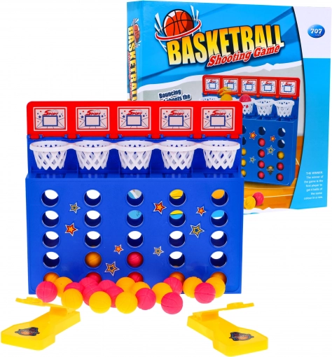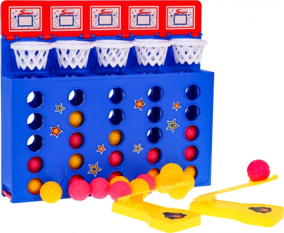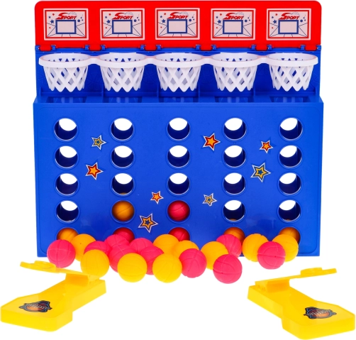 | | Gra zręcznościowa Cztery w rzędzie jest przeznaczona dla dzieci od 4 lat. Zasady są bardzo proste: należy trafić piłeczką do jednego z czterech koszy tak, aby piłeczki tego samego koloru ustawiły się w rzędzie – pionowo, poziomo lub po przekątnej. Kto pierwszy ustawi w rzędzie 4 piłeczki w tym samym kolorze, wygrywa. Wbrew pozorom nie jest to łatwe zadanie i zapewnia mnóstwo emocjonującej zabawy. |