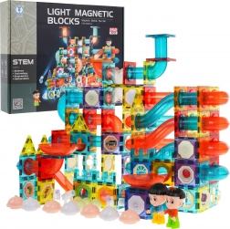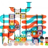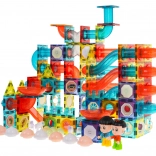 Odkryj świat zabawy z tym kolorowym, magnetycznym zestawem konstrukcyjnym dla dzieci od 3 lat. Zestaw zawiera 292 elementy, które umożliwiają budowę toru kulkowego w dowolnej konfiguracji. Niektóre części są zasilane bateriami i po włączeniu rozświetlają tor pulsującymi światłami, co czyni zabawę jeszcze ciekawszą.