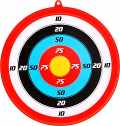 | - szerokość łuku ok. 35 cm, - długość strzały ok. 25,5 cm, - średnica tarczy ok. 23,5 cm, - całkowita długość łuku ok. 52 cm. |