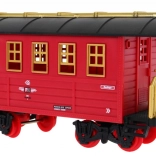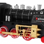 Ten klasyczny parowy zestaw kolejowy ucieszy małych i dużych miłośników pociągów. Lokomotywa płynnie rusza na polecenie przez pilot na podczerwień, wydaje realistyczne dźwięki jazdy i trąbienia, włącza światła oraz tworzy efektowną dymną chmurę dla jeszcze wierniejszej atmosfery dworca kolejowego.