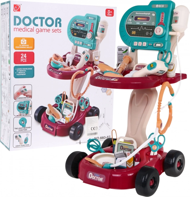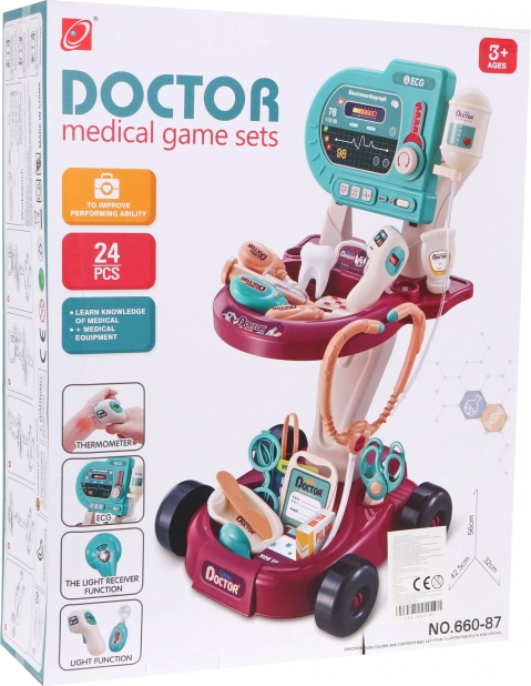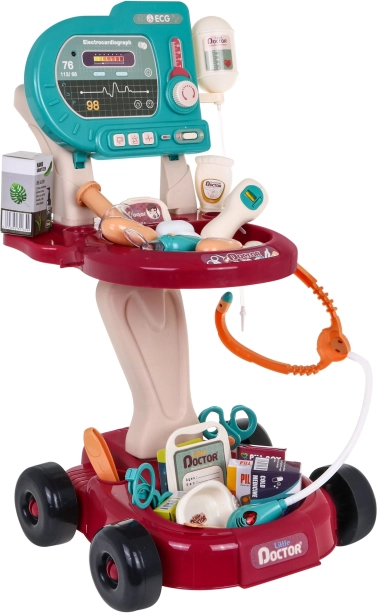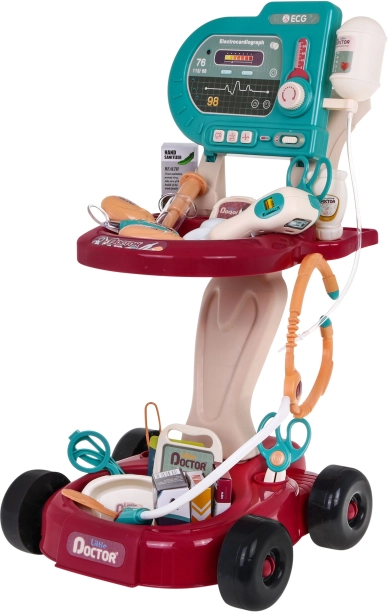 Dzieci mogą bawić się wózkiem lekarskim, który jest łatwy do przenoszenia dzięki kółkom. Ten zestaw rozwija wyobraźnię i pomaga dzieciom odkrywać świat medycyny.