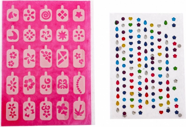 - Samoprzylepne ozdoby do paznokci w różnych kształtach i kolorach.