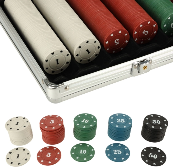 Zestaw pokerowy zawiera 500 żetonów, które umożliwiają prowadzenie długich i ekscytujących rozgrywek. Idealny do domowych gier lub wieczorów z przyjaciółmi. Składa się również z dwóch talii kart, co rozszerza możliwości i warianty gier, umożliwiając doskonalenie umiejętności we wszystkich odmianach pokera i innych grach karcianych.