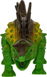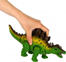 Interaktywny mechanizm sprawia, że stegozaur samodzielnie kroczy, jednocześnie poruszając głową i ogonem – zabawa staje się żywsza i bardziej realistyczna.