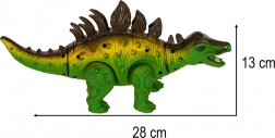 Ten interaktywny stegozaur na baterie zapewnia dzieciom świetną zabawę i naukę. Zabawka sama porusza się do przodu, podczas chodu obraca głową i ogonem, a wszystko to towarzyszy ryk dinozaura i kolorowe światła. Dzięki solidnemu, plastikowemu wykonaniu idealnie nadaje się do codziennej zabawy.