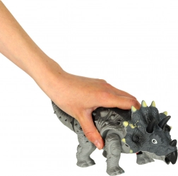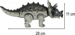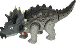 Triceratops podczas chodzenia porusza się, rusza głową i ogonem, a całości towarzyszy ryk dinozaura oraz efekty świetlne. Świetnie sprawdzi się do samodzielnej zabawy i wspólnej rozrywki. Pakowany w kartonowe pudełko z okienkiem – idealny również na prezent.