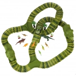 Dinozaurze motywy i figurki ożywiają tor i dają dzieciom poczucie, że znajdują się na prawdziwej przygodzie w prehistorycznym świecie.