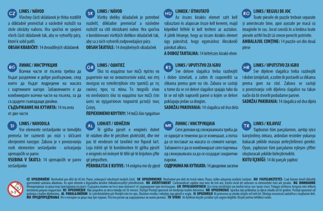 - Zawiera 14 dwuczęściowych układanek