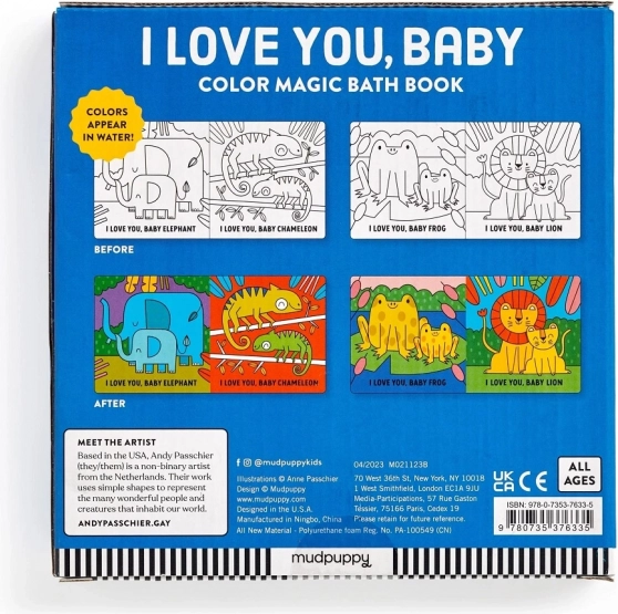 Ta oryginalna książeczka do kąpieli z motywami uroczych zwierzątek została zaprojektowana dla najmłodszych. Na lądzie jest czarno-biała, ale po zanurzeniu w wodzie ujawnia żywe kolory, które oczarują dzieci i pobudzą ich ciekawość. Dzięki kompaktowym rozmiarom i miękkiemu wykonaniu jest idealna do dziecięcych rączek i całkowicie bezpieczna do wodnych zabaw.