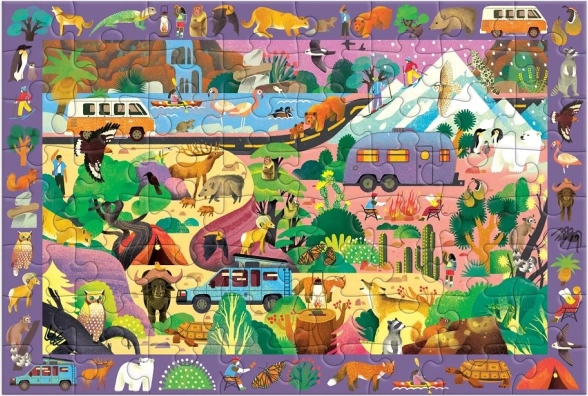 Po złożeniu sceny dzieci ćwiczą spostrzegawczość i koncentrację, szukając ponad 40 roślin i zwierząt przedstawionych na obrzeżu układanki.