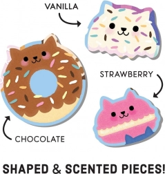 Odkryj zabawne puzzle z zapachem, które łączą układanie z doznaniami węchowymi. Puzzle z motywem kociej kawiarni oferują 60 elementów, w tym 6 specjalnie wycinanych części, z których 3 są pachnące ulubionymi aromatami – truskawka, wanilia i czekolada. Wysoka jakość z papieru z recyklingu, matowe wykończenie oraz solidne pudełko gwarantują trwałość i radość z układania.