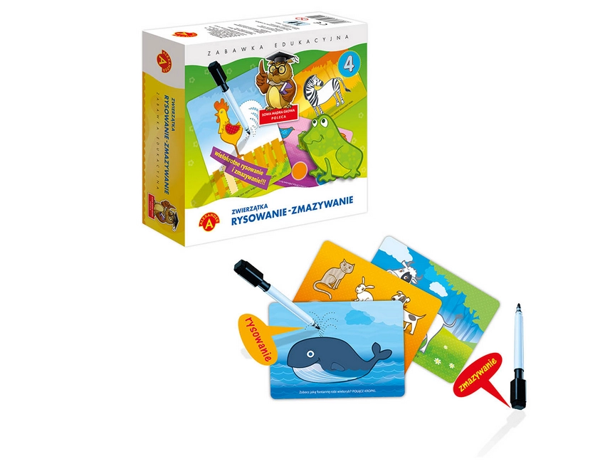 Rysując na podłodze, dziecko uczy się prawidłowych kształtów zwierząt, a jednocześnie doskonali sprawność manualną. Ta zabawka to świetny trening spostrzegawczości, koncentracji, myślenia logicznego i skojarzeń.