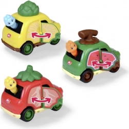 Urocze owocowe autko dla najmłodszych o długości 12 cm zapewnia zabawę, muzykę i rozwój umiejętności. Każdy z 3 kolorowych motywów (truskawka, arbuz, ananas) ma otwierane drzwiczki, wbudowaną pozytywkę oraz ruchomą gąsienicę do interaktywnej zabawy. Bezpieczne wykonanie bez małych elementów jest idealne dla dzieci od 12 miesięcy. Produkt wysyłany jest losowo, cena dotyczy 1 sztuki.