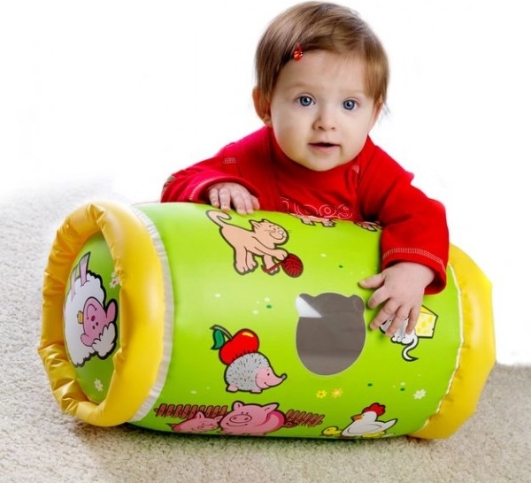 Nadmuchiwany wałek Moje pierwsze zwierzątka to świetna pomoc w wspieraniu rozwoju motorycznego. Zapewnia oparcie przy raczkowaniu, wzmacnia środek ciała i pomaga budować równowagę. Dzięki wesołym motywom i dzwoniącym dzwoneczkom zachęca dzieci do ruchu i zabawy.
