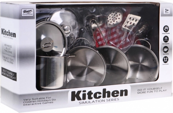 | | Wysokiej jakości zestaw garnków ze stali nierdzewnej. Wyglądem przypomina prawdziwe wyposażenie kuchni, lecz w miniaturowej wersji. Zestaw odpowiedni dla dzieci od 3 lat. Z pewnością ucieszy każdego małego kucharza lub kucharkę. Zestaw pozytywnie wpływa na dziecięcą wyobraźnię i kreatywność oraz rozwija pasję do gotowania. |