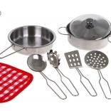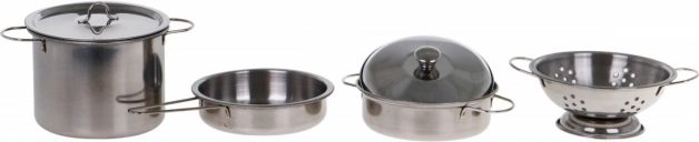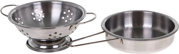 | - duży garnek z pokrywką, - mały garnek z pokrywką, - durszlak, - patelnia, - łopatka do smażenia, - chochla, - sitko, - łyżka do makaronu, - talerzyk. | |