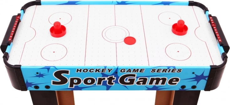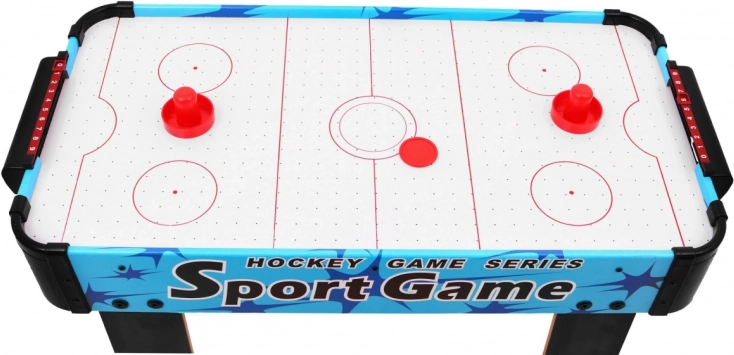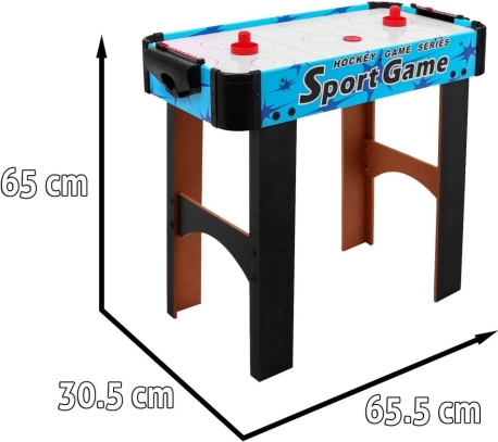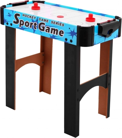 Delektuj się dynamiczną zabawą z kompaktowym stołowym air hockeyem. Pole gry z otworami i przepływem powietrza tworzy poduszkę, po której krążek gładko ślizga się bez tarcia. Dwóch graczy staje naprzeciw siebie i za pomocą paletek („grzybków”) stara się trafić krążkiem do bramki przeciwnika.