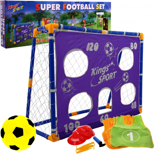 W skład zestawu wchodzi płachta treningowa z celami, która pomaga poprawić celność strzałów i współpracę zespołową. Zestaw obejmuje również numerowane kamizelki ułatwiające identyfikację drużyn oraz zestaw pachołków do rozwijania zwinności i umiejętności manewrowania w sytuacjach meczowych.