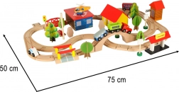 Drewniany zestaw pociągów dla dzieci, 69 części