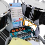 Efekty perkusyjne i elementy świetlne aktywują się przy uderzeniu pałeczkami w bębny i talerze. Perkusję można połączyć z telefonem, aby uzyskać pulsujące świetlne rytmy, które pomogą dziecku uczyć się gry na perkusji. Panel sterowania umożliwia podłączenie telefonu lub słuchawek oraz dodanie podkładów muzycznych.