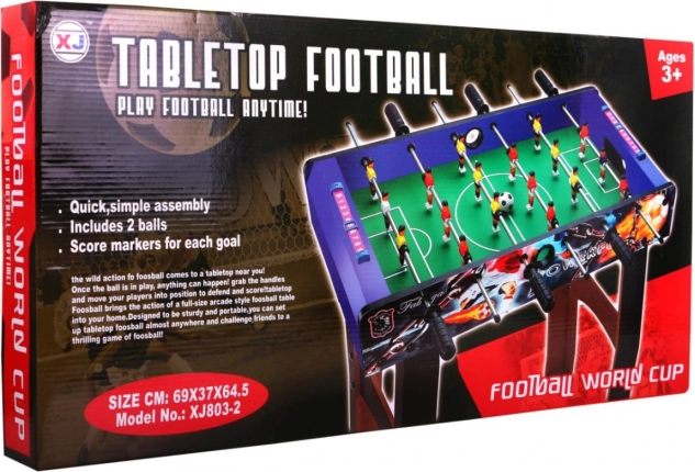 Wyjątkowo stabilne i mocne nogi, wzmocnione poprzeczkami, gwarantują trwałą konstrukcję odporną nawet na emocjonujące rozgrywki. Otwory do wrzutu piłeczki po obu stronach stołu zapewniają płynny ciąg gry. W zestawie znajdują się dwie piłeczki oraz dwa manualne liczniki wyników.