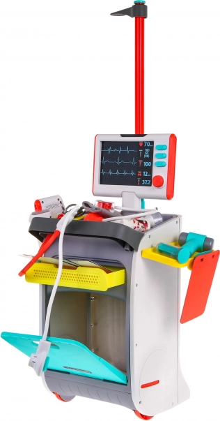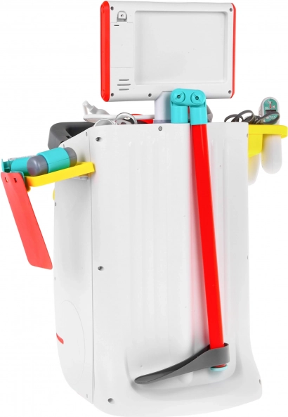 Przynieś radość i naukę dzieciom z tym dziecięcym wózkiem lekarskim. Ten zestaw do zabawy wspiera kreatywną zabawę jednocześnie wprowadzając dzieci w świat medycyny. Jest wyposażony w panel EKG/RTG, panel dźwiękowy i wiele autentycznie wyglądających narzędzi lekarskich, które fascynują dzieci.