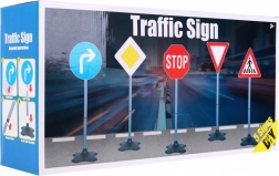 W opakowaniu znajdziesz pięć najpopularniejszych i najczęściej używanych znaków: STOP, Nakaz skrętu w prawo, Ustąp pierwszeństwa, Droga z pierwszeństwem oraz Przejście dla pieszych. Zestaw świetnie uzupełnia dziecięce sygnalizatory świetlne i inne elementy ruchu drogowego.