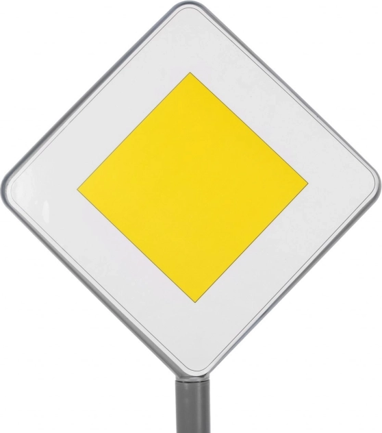 W zestawie znajdziesz STOP, nakaz skrętu w prawo, ustąp pierwszeństwa, drogę z pierwszeństwem oraz przejście dla pieszych – idealne do stworzenia miasteczka ruchu drogowego.