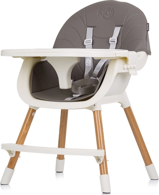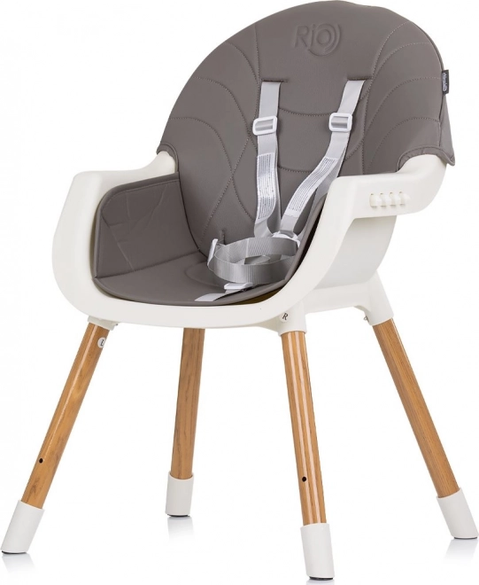 Krzesełko do karmienia 2w1 Rio rośnie razem z Twoim dzieckiem – łatwo przekształcisz je z wysokiego krzesła do stołu w niskie, samodzielne krzesełko. Wygodne siedzisko ze skórzanym pokryciem czyści się bez trudu, więc poradzi sobie nawet z najbardziej szalonymi posiłkami.