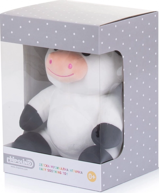 Pluszowa krówka CHIPOLINO została zaprojektowana specjalnie dla noworodków i małych dzieci, aby dawać im poczucie bezpieczeństwa i pomagać w zasypianiu. W brzuszku ma zintegrowaną lampkę nocną, która subtelnie świeci w różnych kolorach, oraz odtwarza 3 kołysanki dla wyciszenia i relaksu.