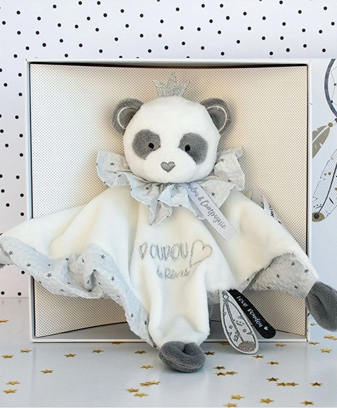 Jego uspokajający efekt jest niezastąpiony, co czyni go idealnym prezentem na Boże Narodzenie lub na narodziny dziecka. Dostarczany jest w pięknym pudełku upominkowym, które przywołuje nowoczesność i luksus. Pielęgnacja przytulanki jest łatwa, wystarczy ją prać w kąpieli w 30° i suszyć w niskich temperaturach.