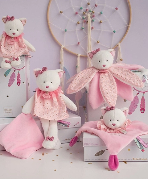 Ten piękny pluszowy przytulak nie tylko dostarcza miękkości i pociechy, ale także rozwija zmysły i ciekawość dzieci. Jego wzornictwo łączy modne kolory i delikatne materiały, co czyni ten zestaw atrakcyjnym dla małych i większych dzieci.